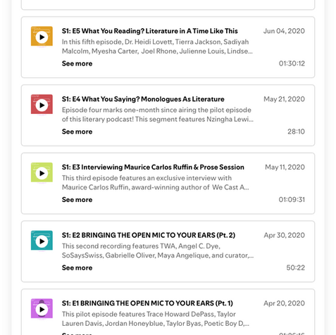 In the spring of 2020, while quarantined in New Orleans and miles away from my family in New York City, I started this as a labor of love. I knew little about technical production, but I had an idea. So, I carved out a small space to sit down in my closet and began recording with the artists, scholars, and friends featured on each episode. The Series took shape at a time when we had to form new ways of being and socializing. I began to wonder: how would the literary saloon evolve in an increasingly digital world? After all, literary saloons have always been essential spaces for creativity, storytelling, cultural and intellectual production. In a period where the world was ailing, what if we began by listen... to each other? What might we learn? Creating What You Reading? also became an opportunity to break down structural barriers around who's included in conversations surrounding language and literature. In some instances, featured artists are formally trained writers and educators; in others, they are members of my community who simply enjoy reading a good book or grew up listening to stories. Episodes were recorded thematically across genres and ideas—poetry, monologues by actors, works from other writers—mirroring the kinds of artistic and intellectual exchanges one might experience at a literary saloon in a bar or in someone’s living room. There are some episodes where I interviewed writers in my community not long after their new work was released, because, as writers, this is the currency of our literary lives: the practice of community. I had not yet started my doctoral program, where I would center my research around the intersections of spoken and literary poetries. Although, I was already conducting the work of a literarian and archivist, preserving literary and cultural history. At the time every episode was produced, I was working on my thesis for a degree in fine arts. Had I acquired the theoretical language I have now, I would have been able to articulate more precisely the methodology underlying this curatorial project, as one of my literature professor had encouraged. The point is that I have always believed language to be a tool of colonialism and resistance, and that intervention, like my dissertation, is how many things begin. So, I wanted to address these concerns as a creative: What would we make of ourselves and each other if we were able to pause, listen, and learn more about our literary history? And how might we get others to witness and affirm the expansive role of the arts in society? This podcast was, undoubtably, created in honor of, and inspired by, the numerous educational programming I watched on local television as a child that, several years later, is being threatened and defunded by government stakeholders. I know now that if we are the ones to make things better and possible for the next generation then beginnings are all about taking chances. This is a podcast [driven by ideas and led] with a purpose.